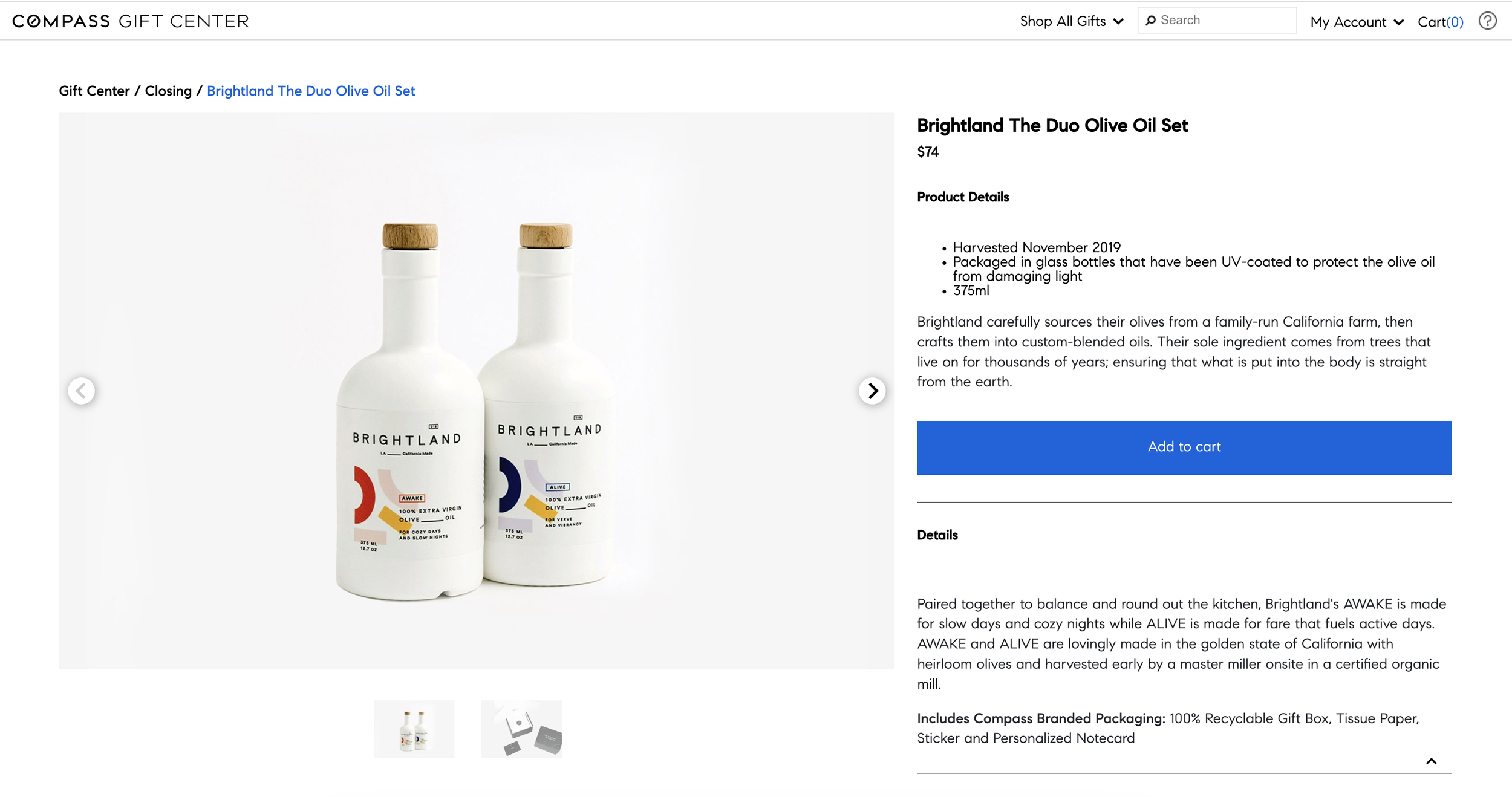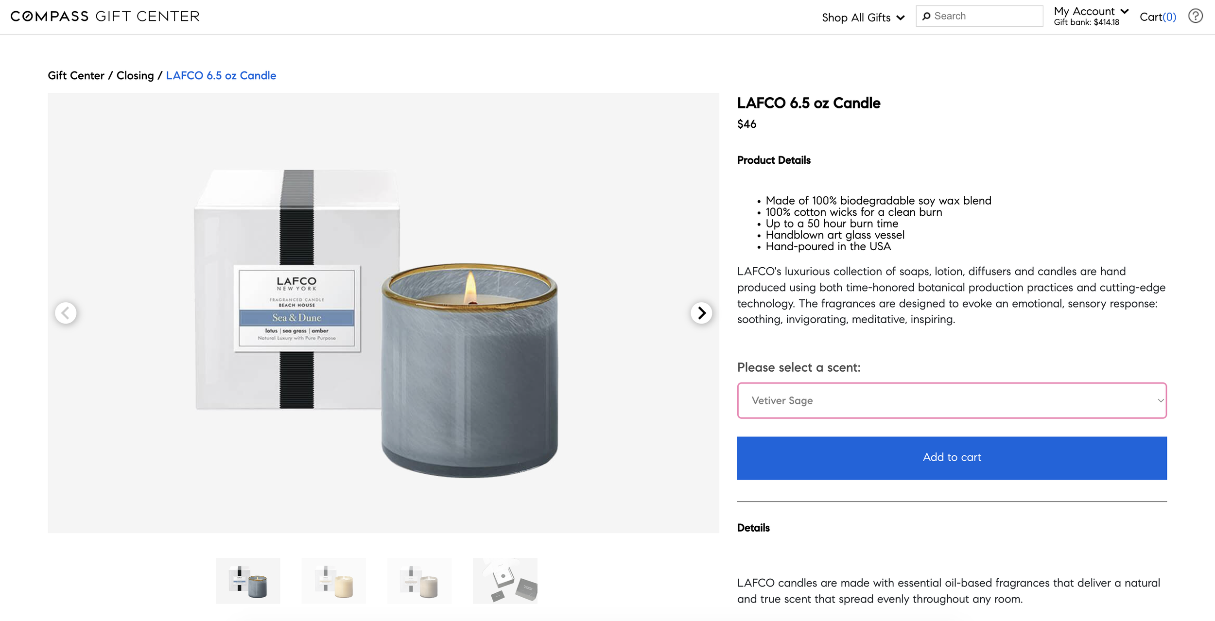 Gift Center, a client gifting tool that allowed brokers to send name brand gifts wrapped in Compass packaging with a hand written note incorporating their unique team branding, delivered right to the clients doorstep. This product integrated with the Compass CRM so agents could automate their client gifting needs in a matter of minutes. Launched in 2020 at the height of the Pandemic, this product saw $500k+ in revenue within the first year.